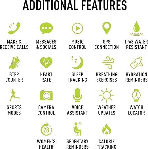 • Technology: Bluetooth calls, notifications, health tracking